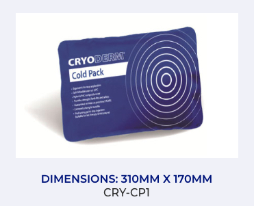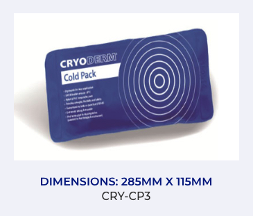 Cryotherapy is the therapeutic use of cold to provide pain relief and rehabilitation therapy to skin and soft tissue (muscle, tendons, ligaments) and joints (strains, sprains). It may also be used immediately after injury to reduce swelling and inflammation which are the main causes of pain and disability. Timely use of this therapy will reduce trauma and promote quicker recovery. Cold packs are an effective and practical way of applying cold directly to the site of the injury or pain.