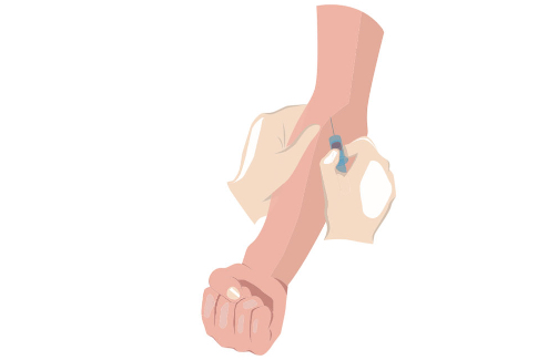 2. Wait 2-5 seconds whilst for the cryogen to evaporate and then insert the needle firmly and precisely.