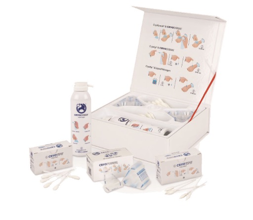 90 delivery devices units – 30 x Cryofunnel®, 30 x 2mm Cryotips®, 30 x 5mm Cryotips®