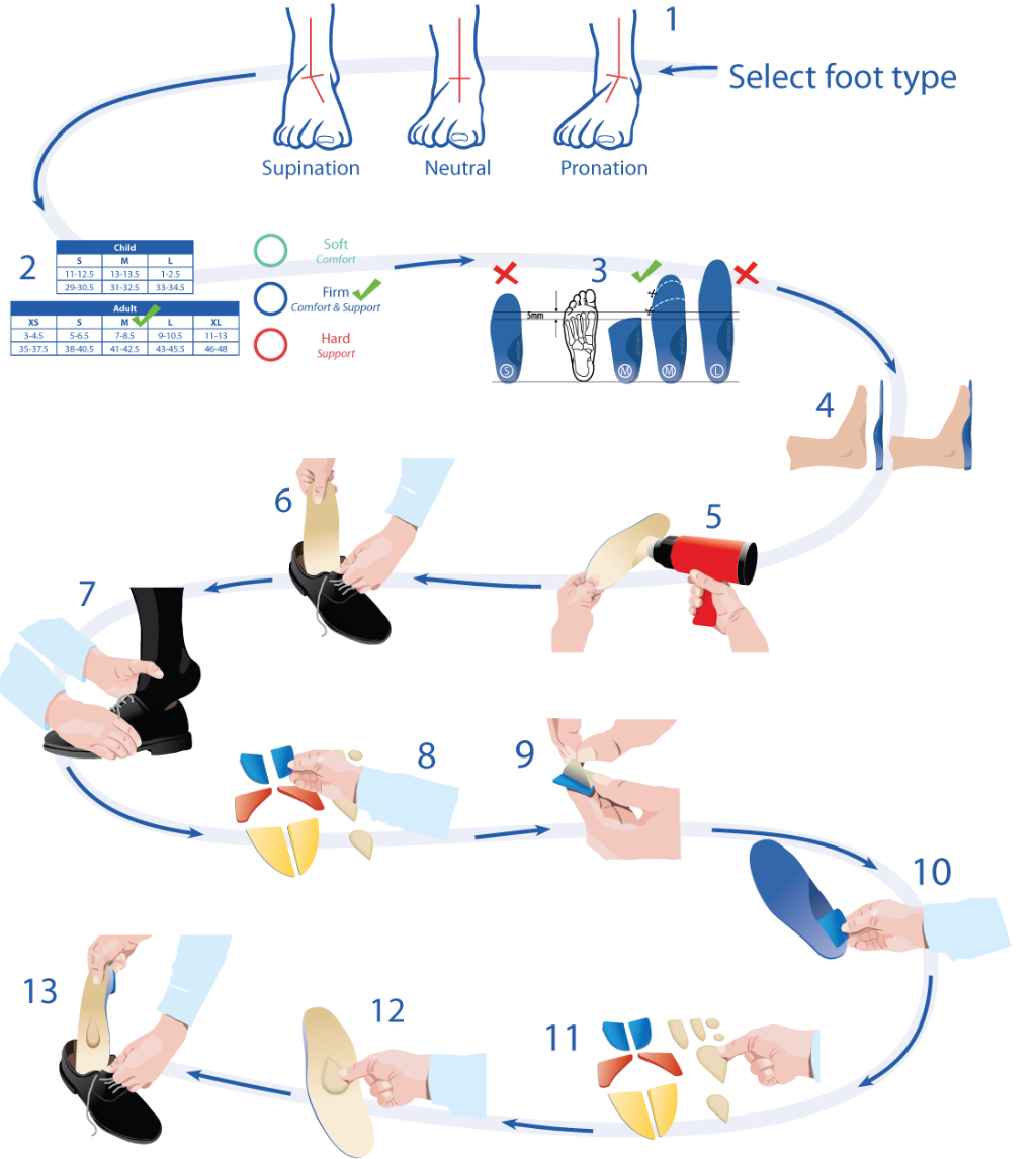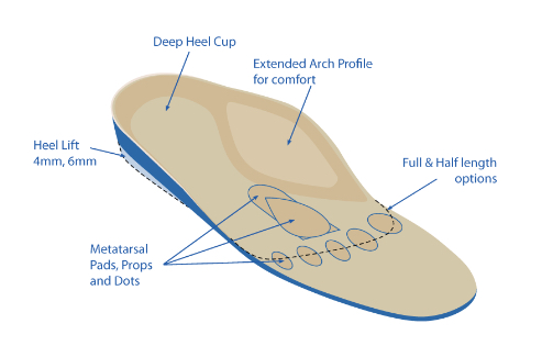 Ortho-pods® are designed with a deep heel cup to cradle the foot, an arch engineered to provide support whilst avoiding arch irritation, 3 comfort and support levels and a large range of sizes and accessories to cater for most foot types. Whether your feet over pronate, over supinate or simply require some neutral support, comfort or shock absorption Ortho-pods® will control function, correct posture and provide support and relief for your foot and lower limb pain.