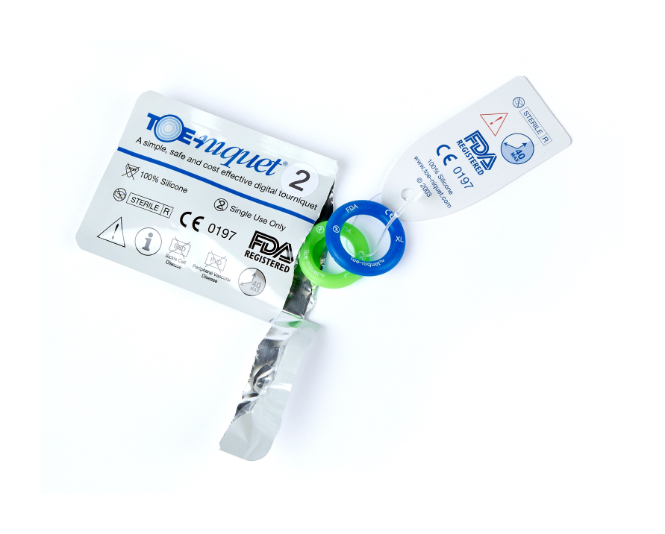 Toe-niquets™ are used during surgery, trauma or first aid by Medical Doctors, Surgeons, Surgical Theatres, Emergency Room Facilities and Podiatrists worldwide. They are supplied sterile ready for use in any clinical or surgical environment.